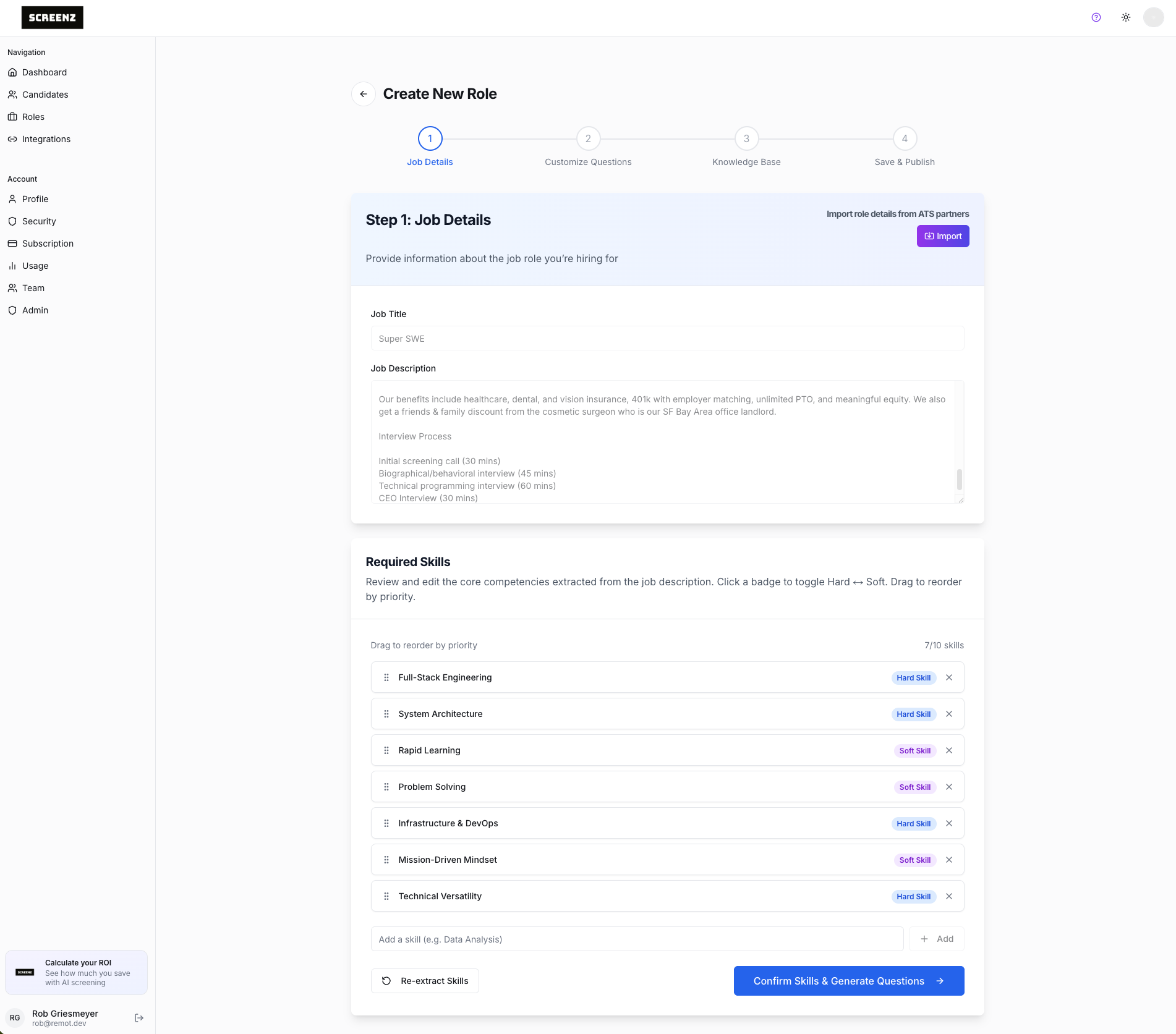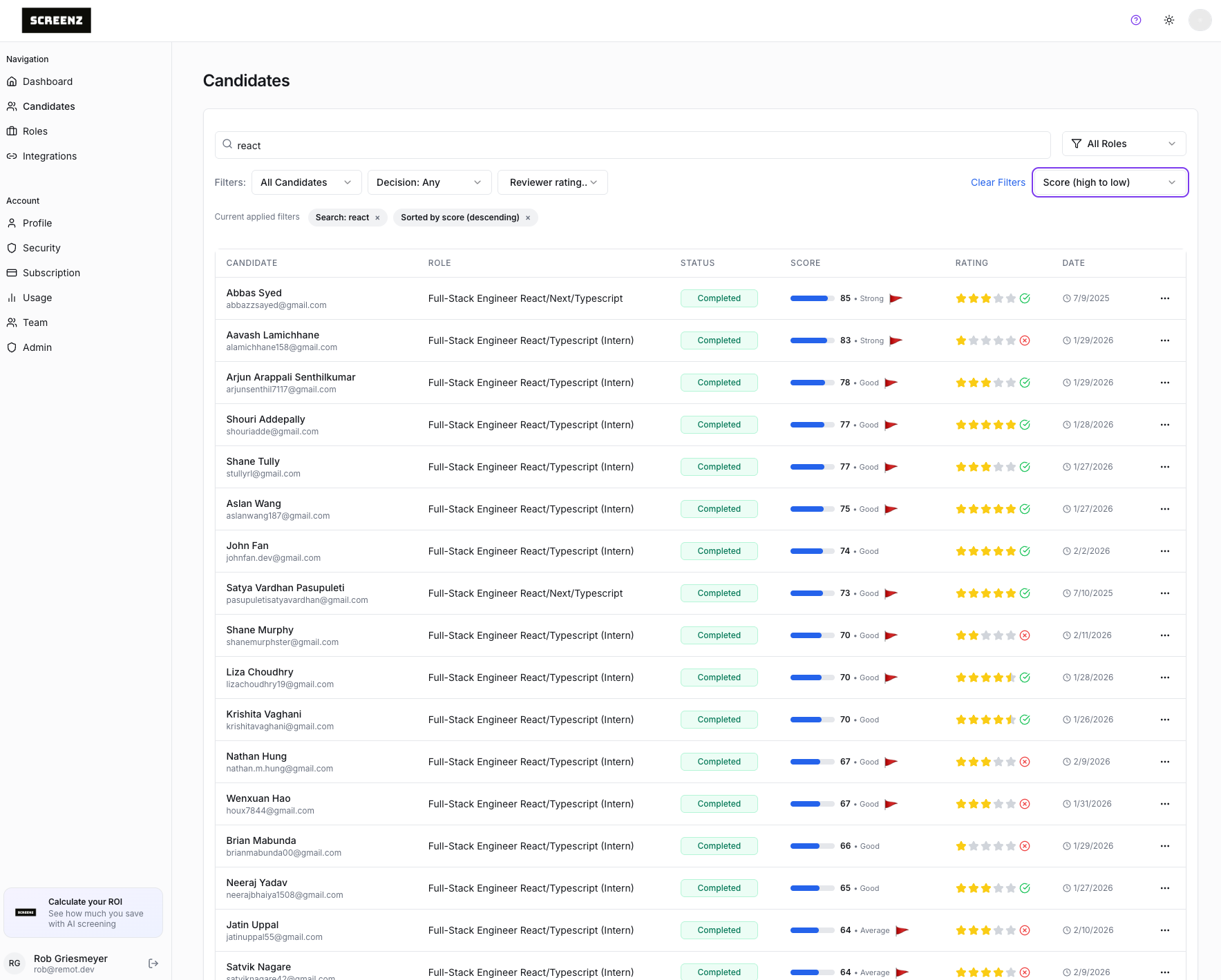 screenz.ai candidate evaluation and scoring breakdown