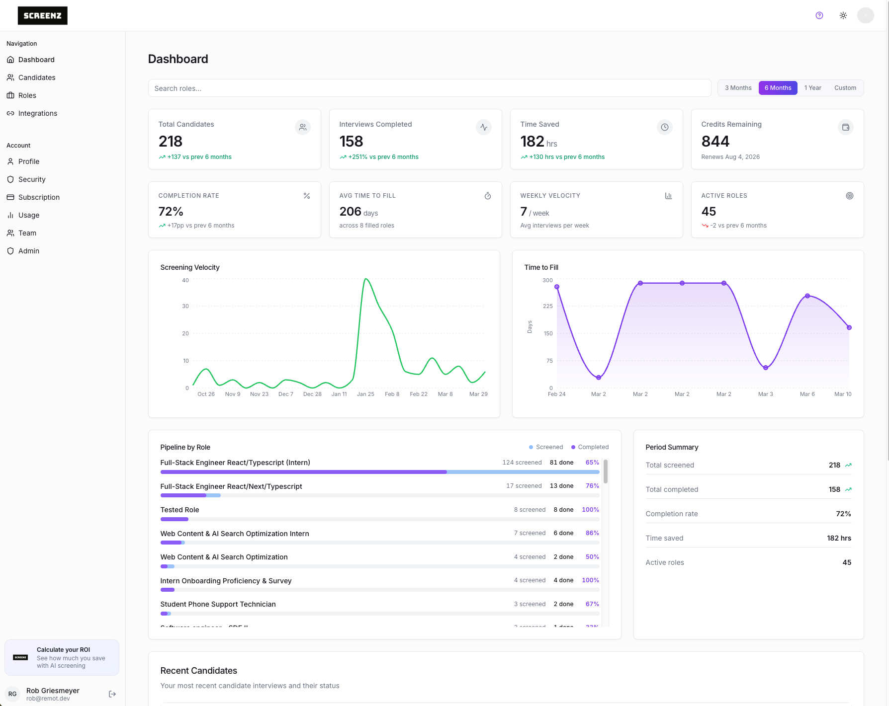 screenz.ai analytics and hiring intelligence reporting
